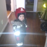 Idag fick jag äntligen komma tillbaks till dagis och leka av mig lite, det var välbehövligt. Morsan och farsan i all ära men ibland behöver man faktiskt få leka med nån som förstår 😉 Och så har jag fått en ny dagishjälm också, en röd fin med grönt spänne – tack mormor!