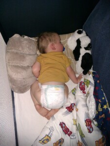 Igår hämtade morsan mig tidigt på dagis för vi hade tänkt åka och hälsa på farmor och farfar. Vi packade in oss i bilen men hann inte ens ut ur stan innan jag råkade kräkas ner hela mig så det var bara att åka hem igen. Det var jättejobbigt och jag blev jätteledsen för innan vi åkte hem var dom var tvungna att klä av mig i bara blöja utomhus och det blåste superkallt…sen sov jag över två timmar när vi kom hem. Jag hann med att kräkas ett par gånger till på kvällen men idag känns det mycket bättre, jag har druckit vatten och nyponsoppa och ätit macka och lax med potatis och allt har stannat kvar i magen (än så länge), dessutom är det bra åt andra hållet också, blöjvägen vill säga 😉