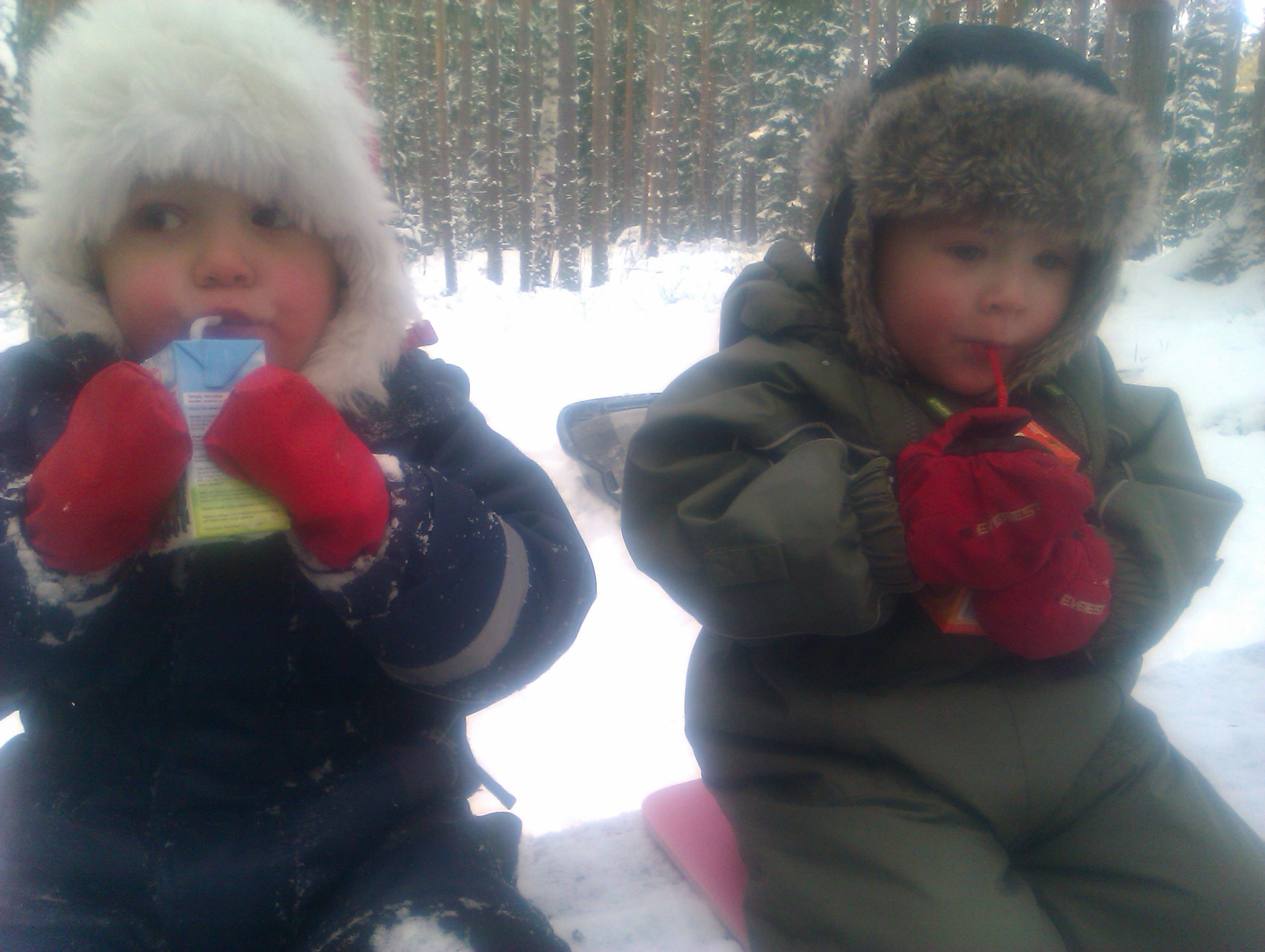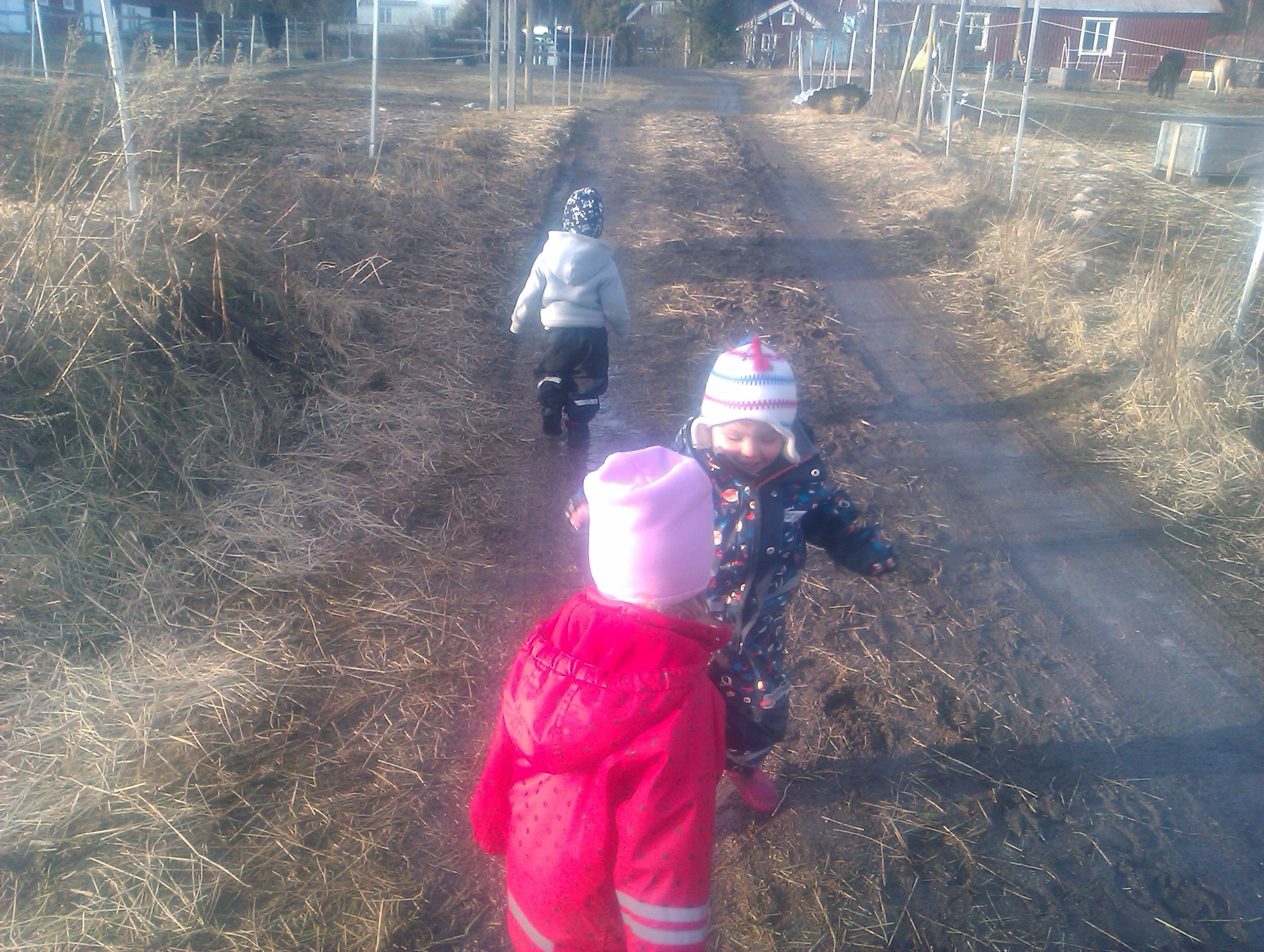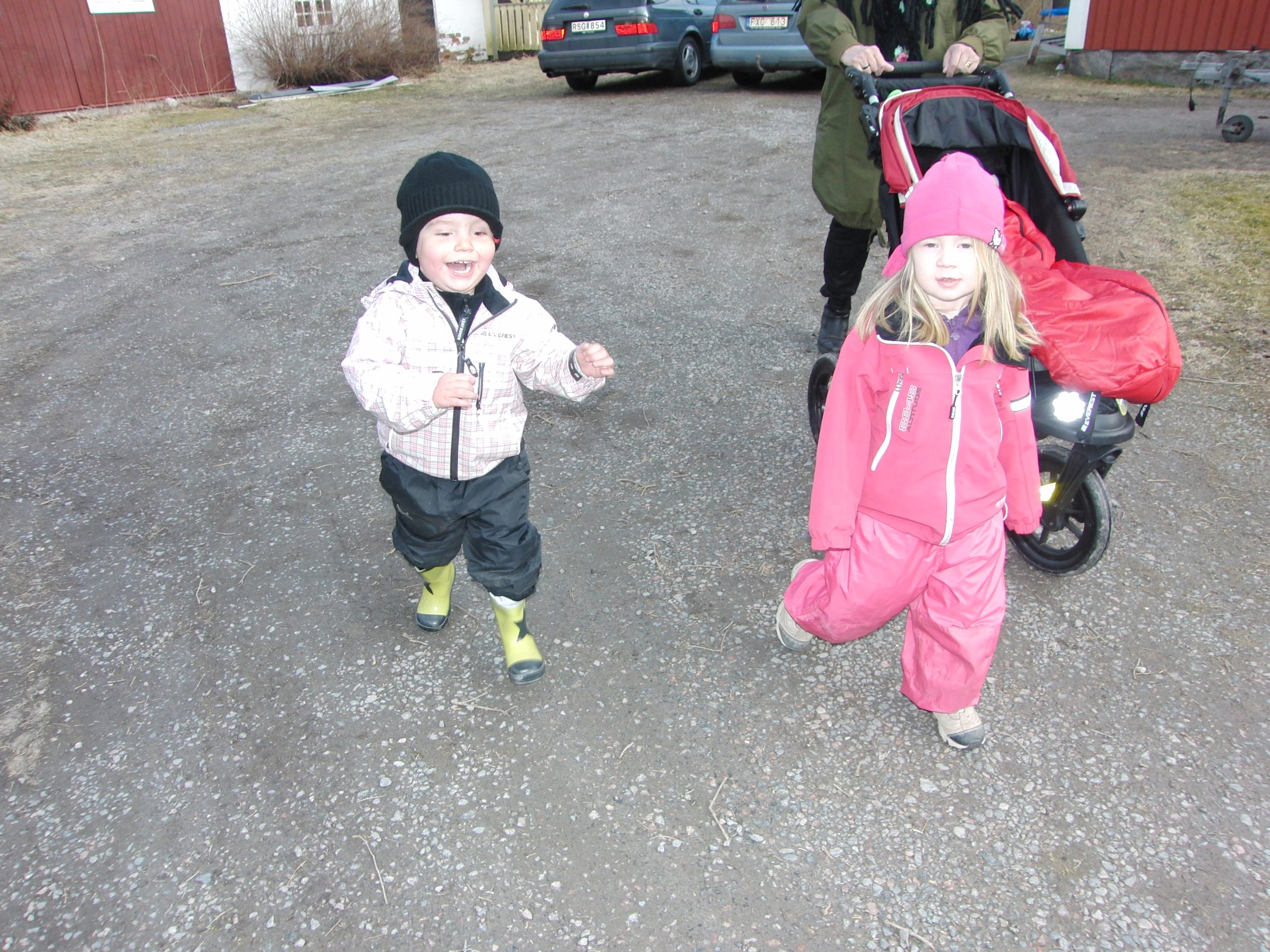 I måndags var vi till badhuset med Bellan och Linda! Jag hoppade som en tok till morsan och satt som en smäck på ryggen på farsan, Bellan satt som ett frimärke runt Lindas hals 😉 Efter ett tag hade vi tröttat ut dom vuxna med massa åk i vattenrutchkanan så då åt vi lite glass och pommes (i den ordningen) och sen åkte vi hem till Gabriel och Jonas för lite pannkaksätande. Efter det gick vi ut och lekte och rätt var det var sprang vi på 2 hästtjejer som frågade om vi ville rida på deras hästar (bor man på en hästgård är det visst sånt man får räkna med!). Det ville inte jag men efter lite övertalning (tvång?) från morsan hoppade jag på (läs: spjärnade emot) och sen ville jag inte kliva av – både jag och Bellan fick rida på båda hästarna och sen fick vi följa med och hämta mat åt dom också 🙂