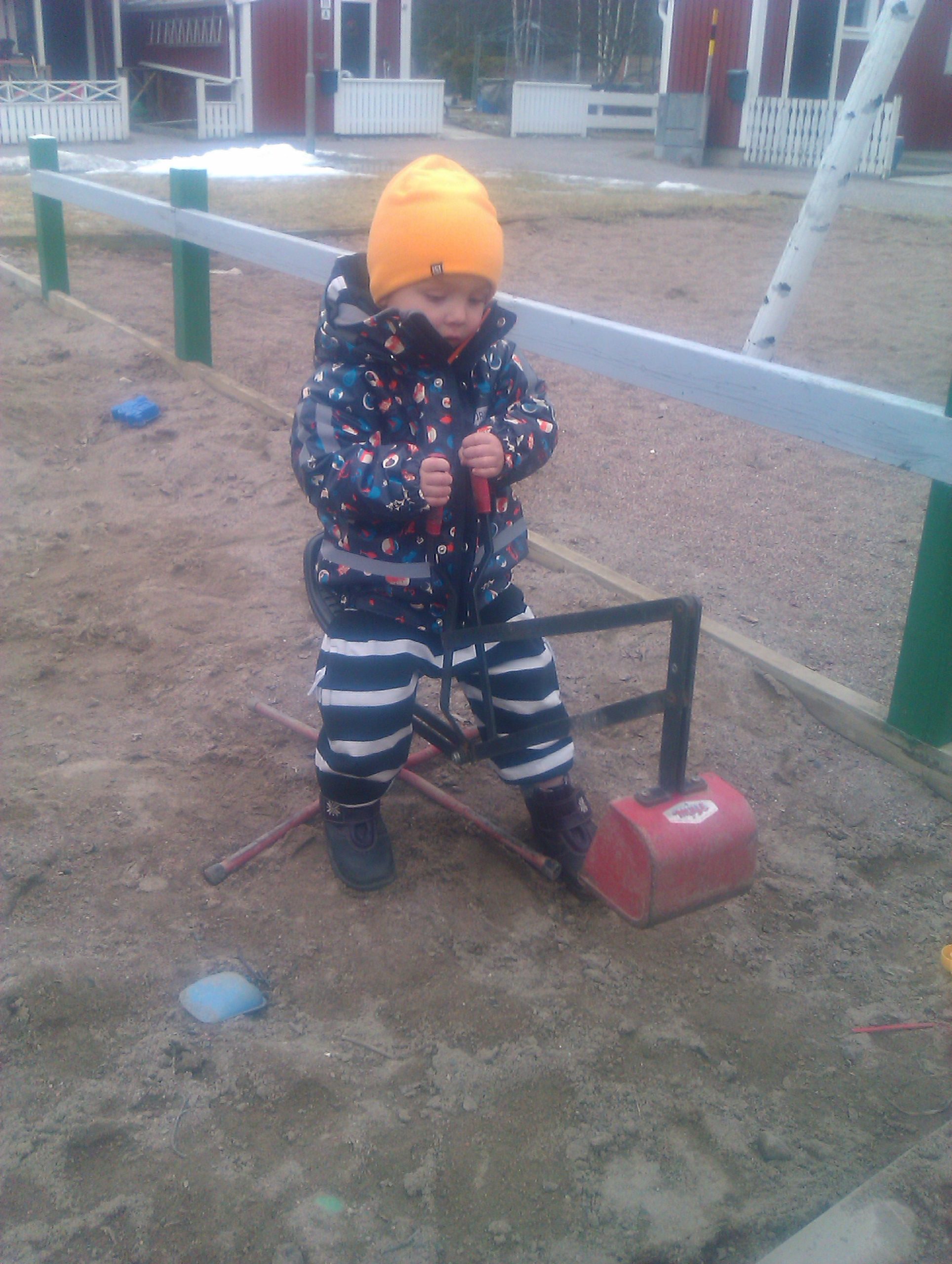 Idag har jag börjat överskolning till stora huset på dagis, nemas problemas! Hade jättekul där så det blir nog bra, är ju flera kompisar som ska med också 🙂 Lite svårt å leka med småttingarna ibland, och dom kan ju inte prata heller. Men det är roligt där med. Synd bara att Bellan slutar på ”smultron” samma dag som jag börjar på riktigt 🙁
