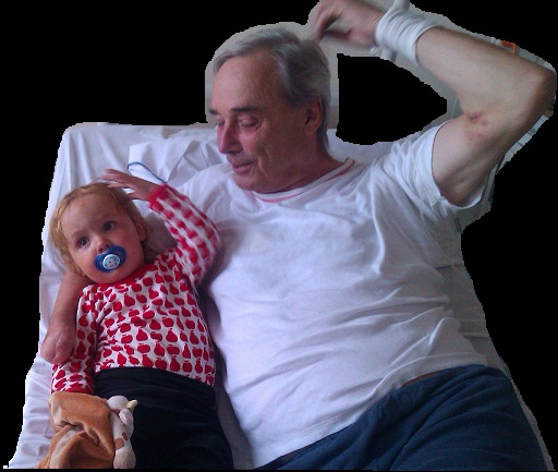 Här är en bild på farfar och mig från förra veckan, han var tvungen å testa om det är så gosigt att pilla sig i håret som jag tycker att det är – tror inte han blev helt övertygad 😉