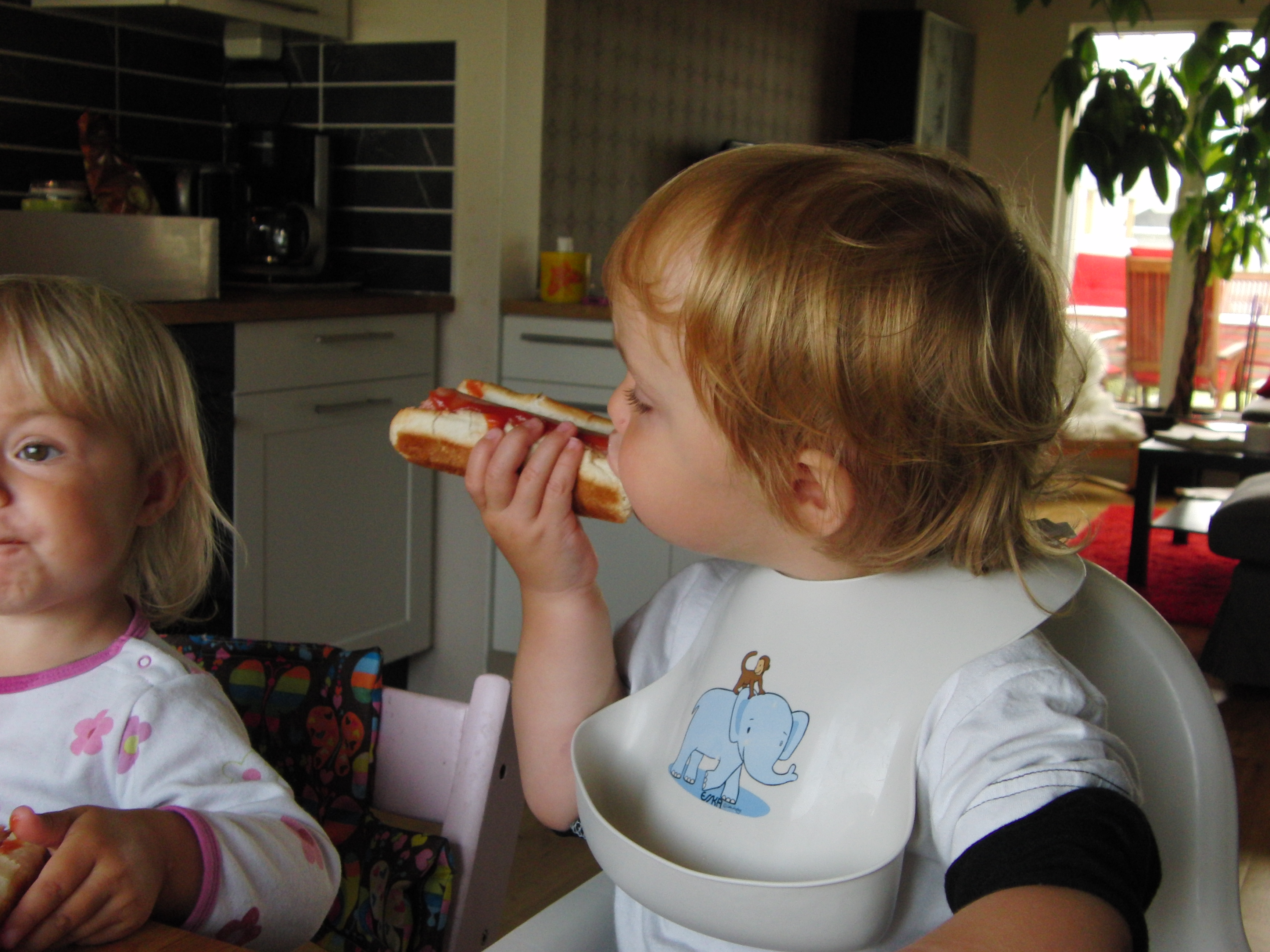 I måndags var vi till badhuset med Bellan och Linda! Jag hoppade som en tok till morsan och satt som en smäck på ryggen på farsan, Bellan satt som ett frimärke runt Lindas hals 😉 Efter ett tag hade vi tröttat ut dom vuxna med massa åk i vattenrutchkanan så då åt vi lite glass och pommes (i den ordningen) och sen åkte vi hem till Gabriel och Jonas för lite pannkaksätande. Efter det gick vi ut och lekte och rätt var det var sprang vi på 2 hästtjejer som frågade om vi ville rida på deras hästar (bor man på en hästgård är det visst sånt man får räkna med!). Det ville inte jag men efter lite övertalning (tvång?) från morsan hoppade jag på (läs: spjärnade emot) och sen ville jag inte kliva av – både jag och Bellan fick rida på båda hästarna och sen fick vi följa med och hämta mat åt dom också 🙂